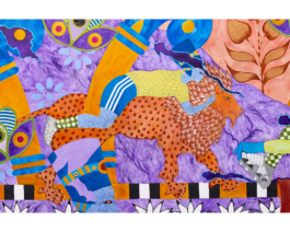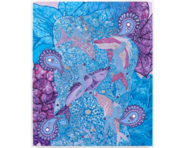 Turbo Queen, 2017, gouache and acrylic on Ikat fabric, 204 × 138 cm