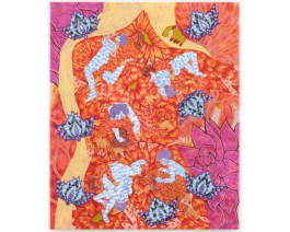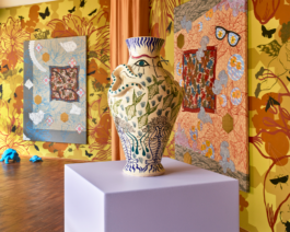 Acrylic on canvas, sewn textile, hand painted and glazed ceramic, 252 x 210 x 64 cm