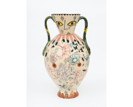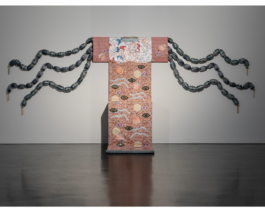 Acrylic on canvas, sewn textile, hand painted and glazed ceramic, 269 x 190 x 48 cm