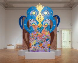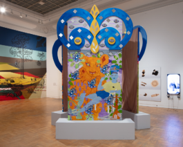 Acrylic on canvas, sewn textile, hand painted and glazed ceramic, App. 252 x 210 x 64 cm