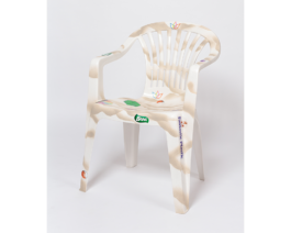Fantastic Plastic, Monobloc chairs, Beige, 2022, spray paint and stickers on plastic, 54 x 80 x 56 cm