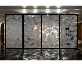Laser-cut aluminium, wood frame, set of 4 panels, 280 × 150 cm each
