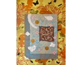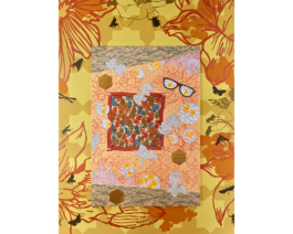 Acrylic, watercolor, mirror on canvas and sewn textile, 62 x 49 cm