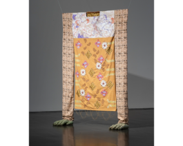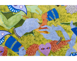 Kalamkari (vegetable dye on cotton), watercolour and acrylic on canvas and sewn textile, 225 × 175 cm